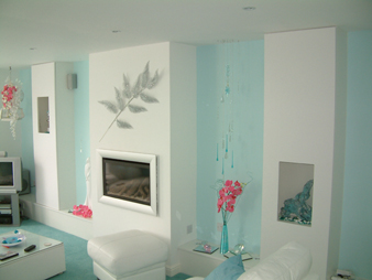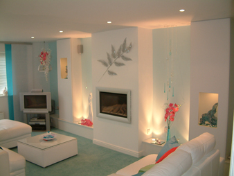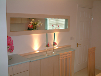 The first set of pictures shows what can be done with a long flat living room wall, without a fireplace. Care to add a little 'wow factor' to your house? The second set shows what can be done with simple cupboards in a tight dining room, by making them fit the space and maximising the storage, even an 8 seater table becomes comfortable - and yes, I made the table as well, with a cupboard underneath for awkward things like vases. |